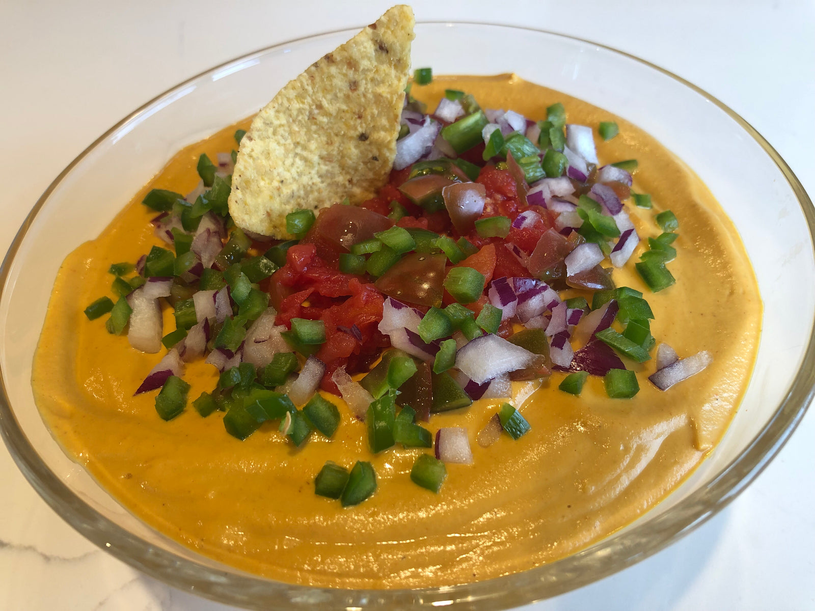 So what exactly is in this vegan queso? The main ingredient here is sweet potatoes! Don't worry, if your not wild about he taste or texture of a sweet potato, this dish gets so transformed you can't even tell it is full of them. It just becomes creamy, smooth textured and full of spices and flavor.
