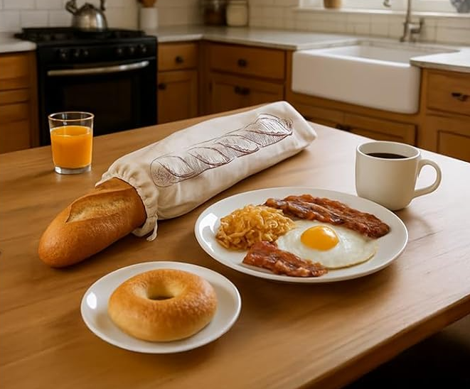 This linen bread bag features a sturdy lining that locks in moisture to keep your...