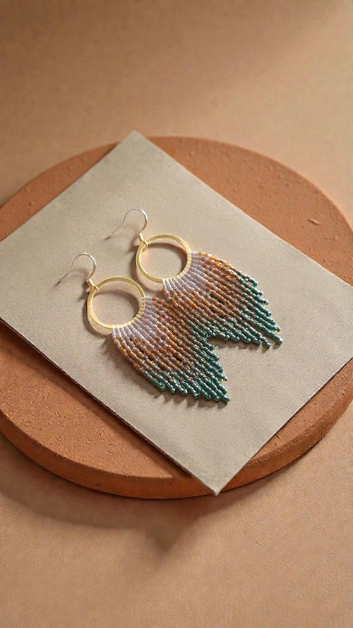 Earthy Gradient Beaded Fringe Earrings